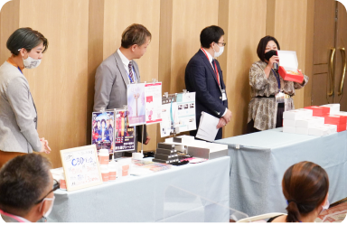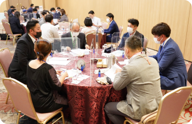 | 商談懇親会 | さらに、懇親の場で人脈を広げます。即座に商談も可能です。飲食を共にしながら、コミュニケーションを図ることができます。 |